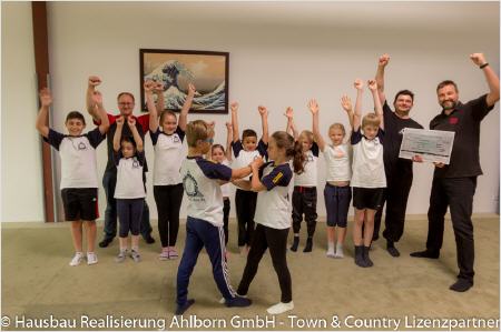 Am Samstag, 16.07.2016, 9.30Uhr übergab der Repräsentant der Town & Country Stiftung Jan Ahlborn dem zweiten Vorsitzenden des WingTjung-Kampfkunst e.V. Uwe Utter symbolisch einen Scheck in Höhe von EUR 500,- für das Vereinsprojekt "Spaß am Sport durch Town & Country Stiftungsgeld". Gekommen waren neben einige Vereinsmitglieder unter anderen auch der Schatzmeister des Vereins Frank Bayer. Er bedankte sich im Namen der Kinder, welche die Förderung erhalten werden, herzlich für die Spende.